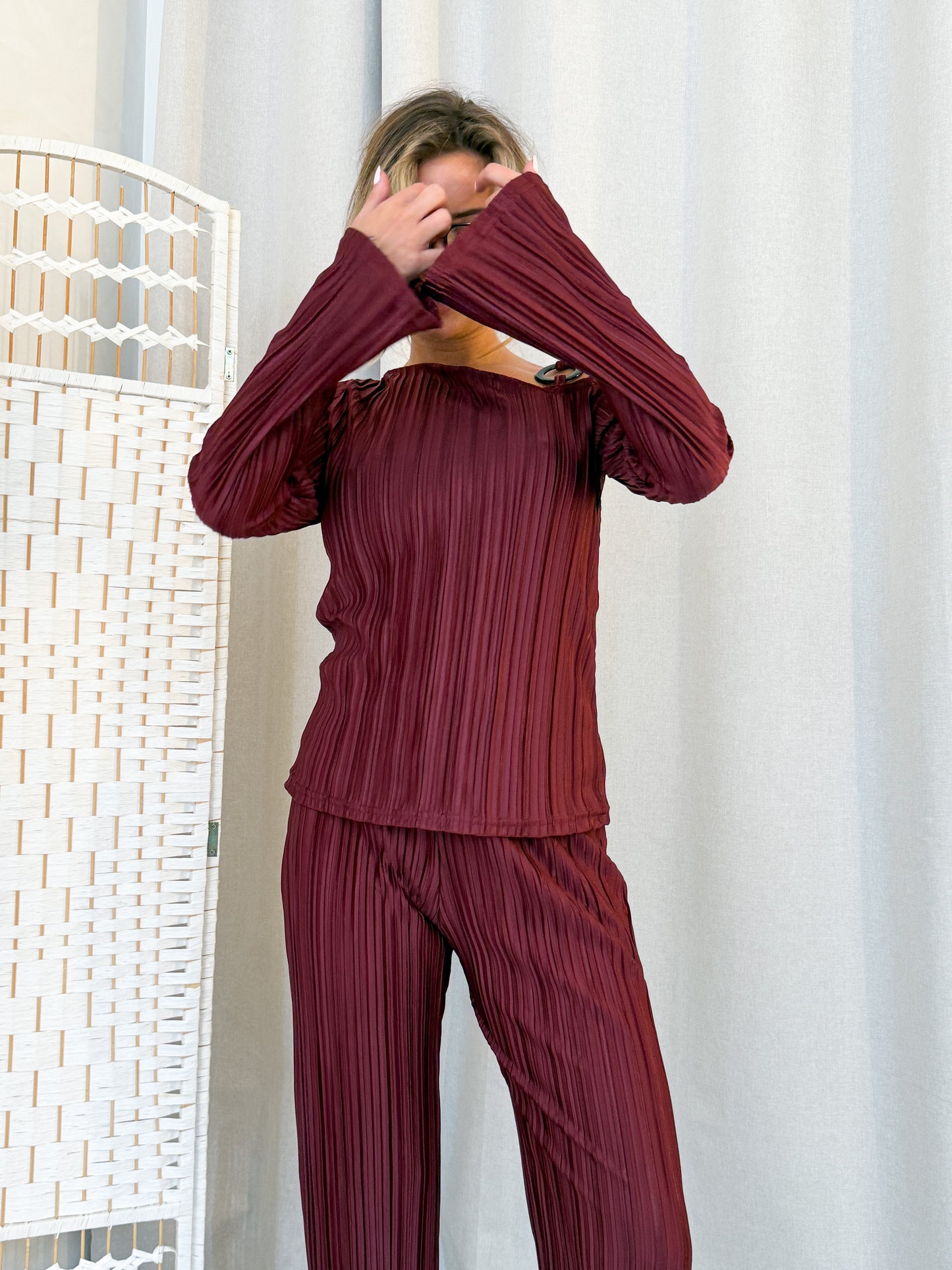 🤍 Burgundy Pleated plisse fabric