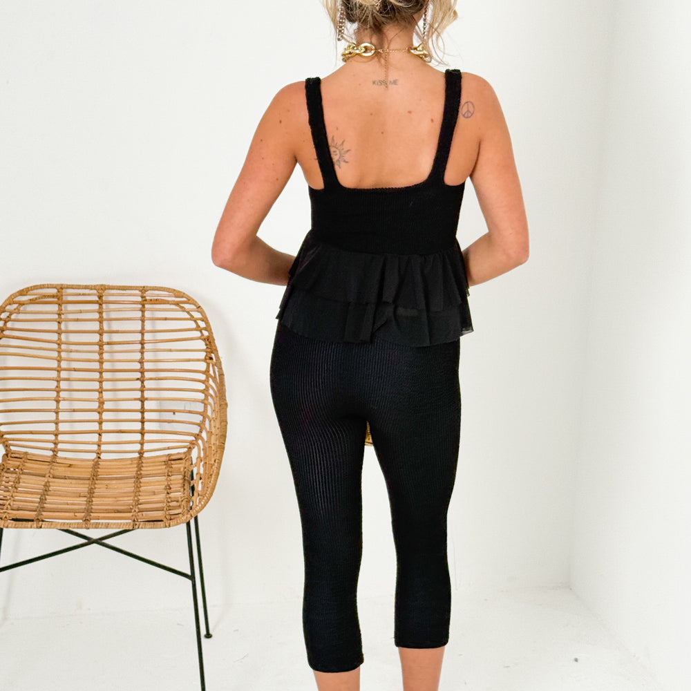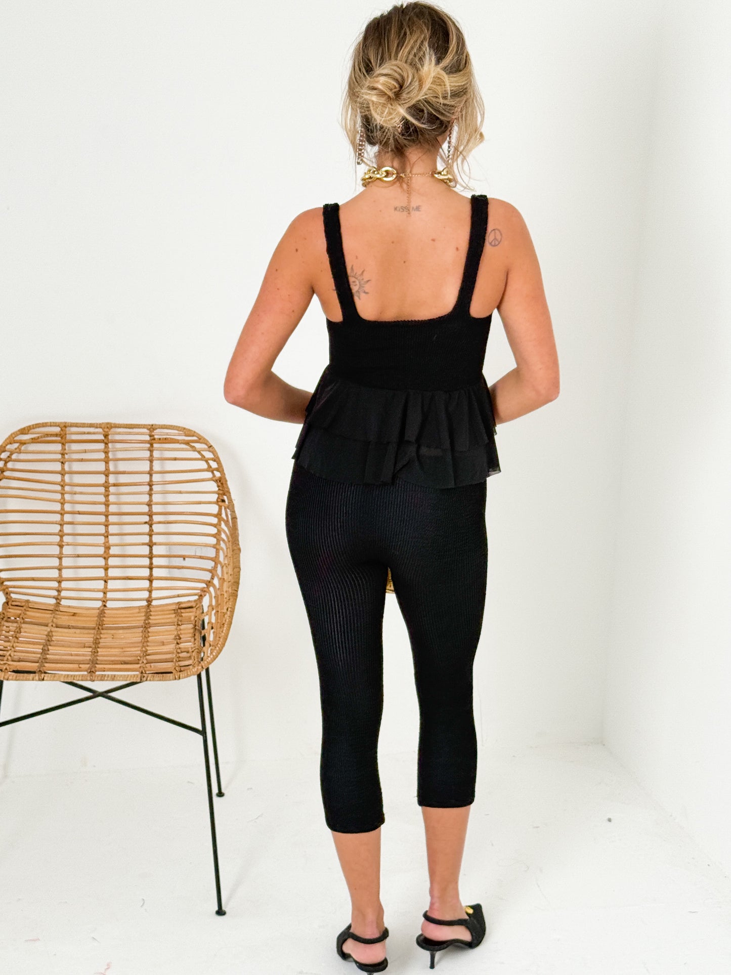 Leggings capri de talle medio con efecto arrugado en color terracota.