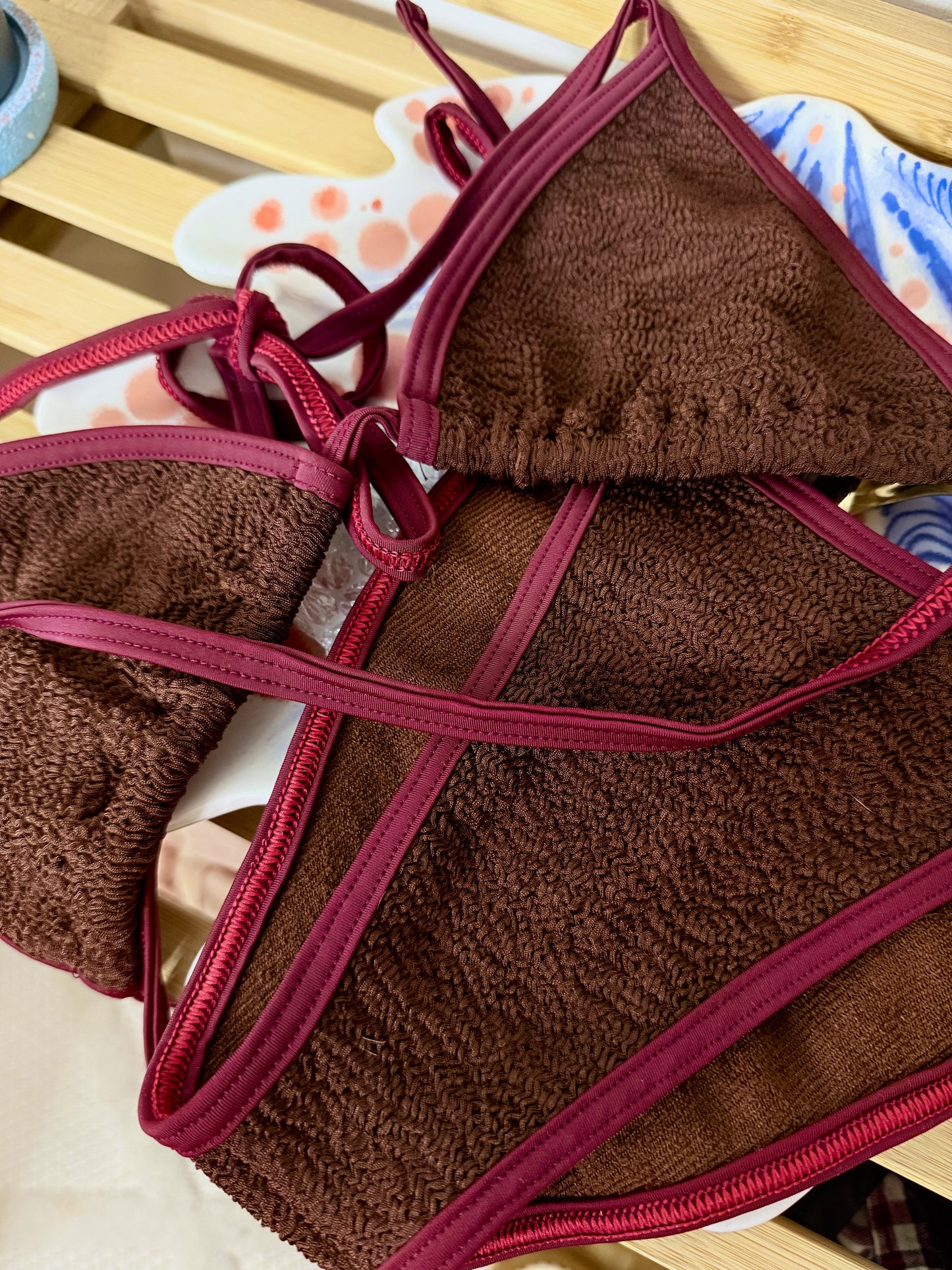 Crinkle bikini set with contrast trim